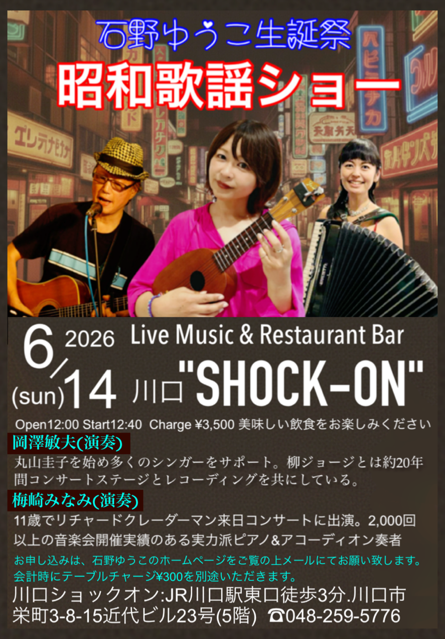 「大森真理子新曲お披露目ワンマンライブ 第二弾!! Hello!My Songs Ⅱ」 前売3800円 / 当日4300円 |