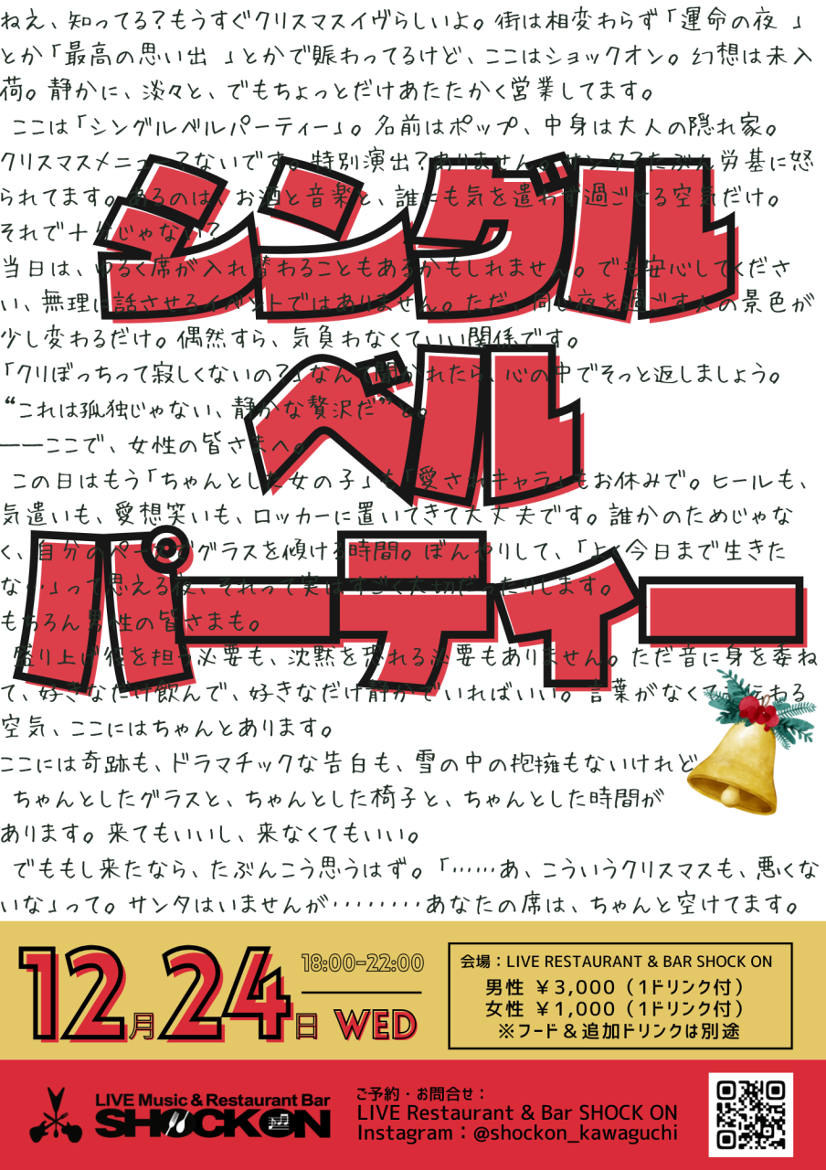 「SORGENTI Christmas Live 2025」 料金:一般:4000円(税込) 高校生以下:2000円(税込) |
