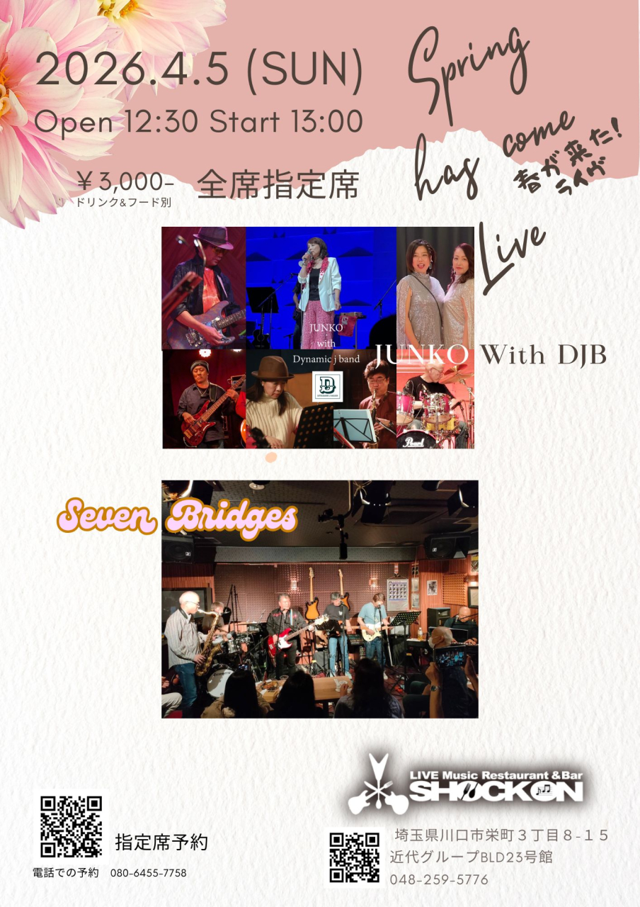 【※3月19日16時よりメール予約受付開始】「Psalm レストランライブ@川口SHOCK ON 〜リクエストナイト〜」 ¥3,500(税込¥3,850) |