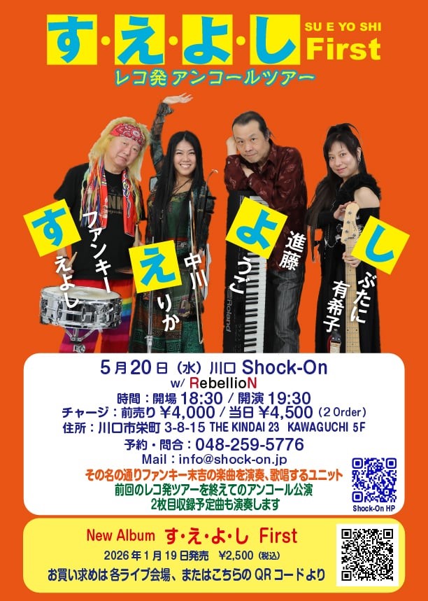 【※2月13日16時よりメール予約受付開始】「川口公演Queeness "A Day with the Aces" 2026 Tour」 【予約】¥ 5,000円(税込¥5,500)【当日】¥ 6,000円(税込¥6,600) |