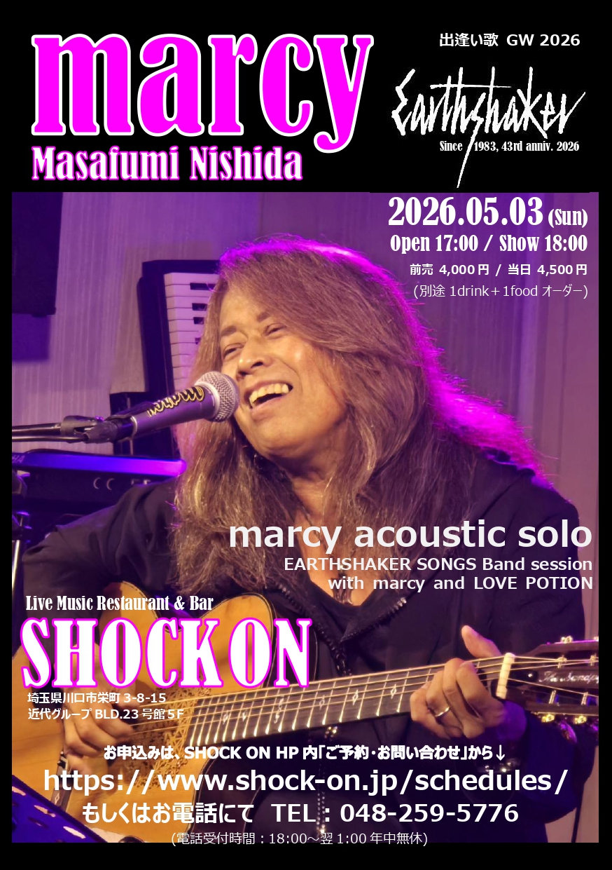 【※SOLD OUT※】「修二Band 〜長渕剛トリビュート ライブ〜」 予約¥3,500(税込¥3,850)当日¥3,800(税込¥4,180) |