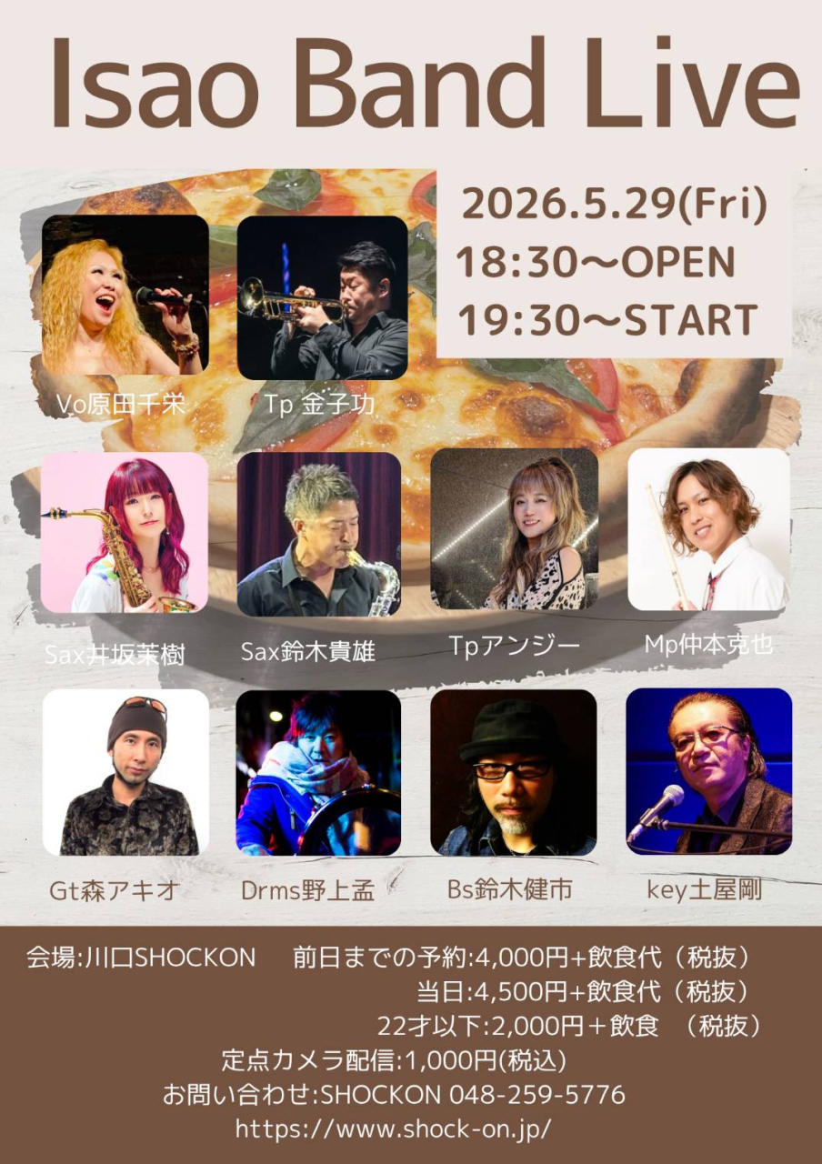 「Isao Band Live」※ツイキャスプレミア配信有り※ 当日¥4,500(税込¥4,950)予約¥4,000(税込¥4,400) |
